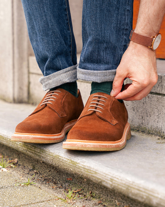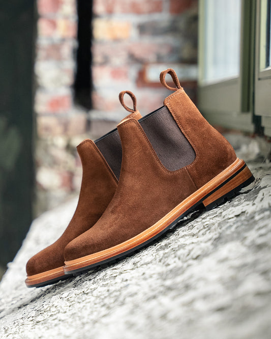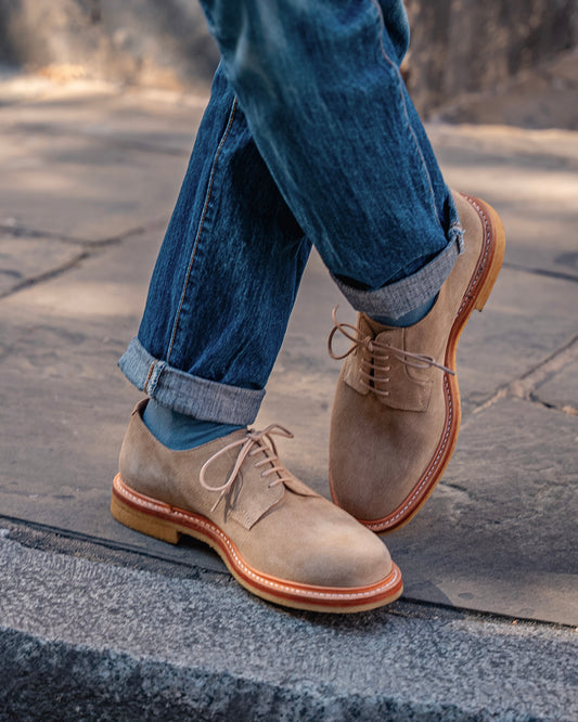 The Brawler, reimagined for sunnier days. This summertime variation features rich Biscotto suede from the Oehler tannery in Germany, paired with a natural crepe sole for a softer look and feel.