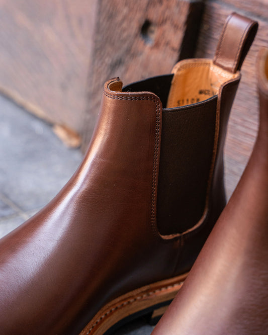 The minimal pattern of this Chelsea boot draws all eyes to its handsome silhouette and the natural beauty of the oil-tanned leather.