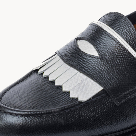 Go bold by adding these White grain leather kilties to your Lennertson Tutor loafers.