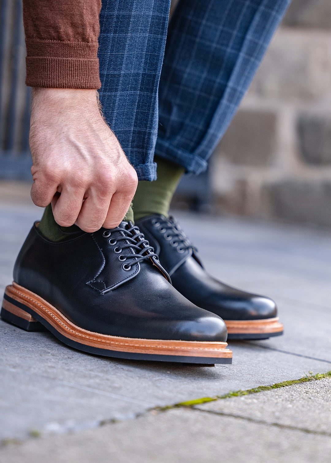 Regarding footwear sustainability, construction methods are equally important to sourcing. Our shoes are Goodyear welted, with stitched soles instead of glued. This results in far more sustainable shoes that will last you a very long time and are endlessly repairable.
