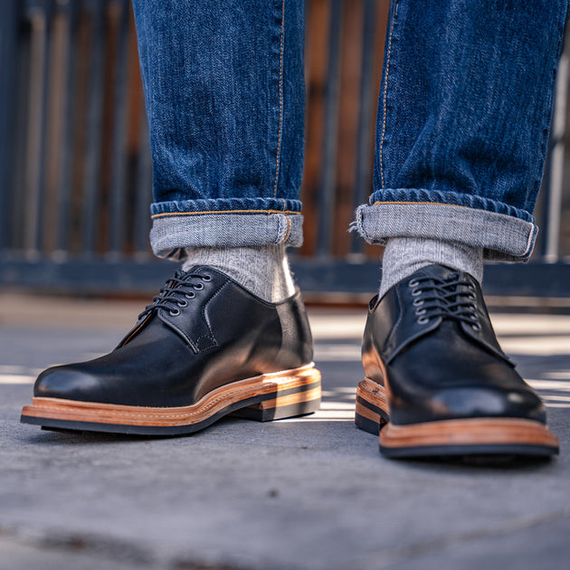 This pair sports a sleek black upper with a contrasting raw leather welt. Turning simplicity into intrigue and attitude—an understated nod to the individuality you express through style