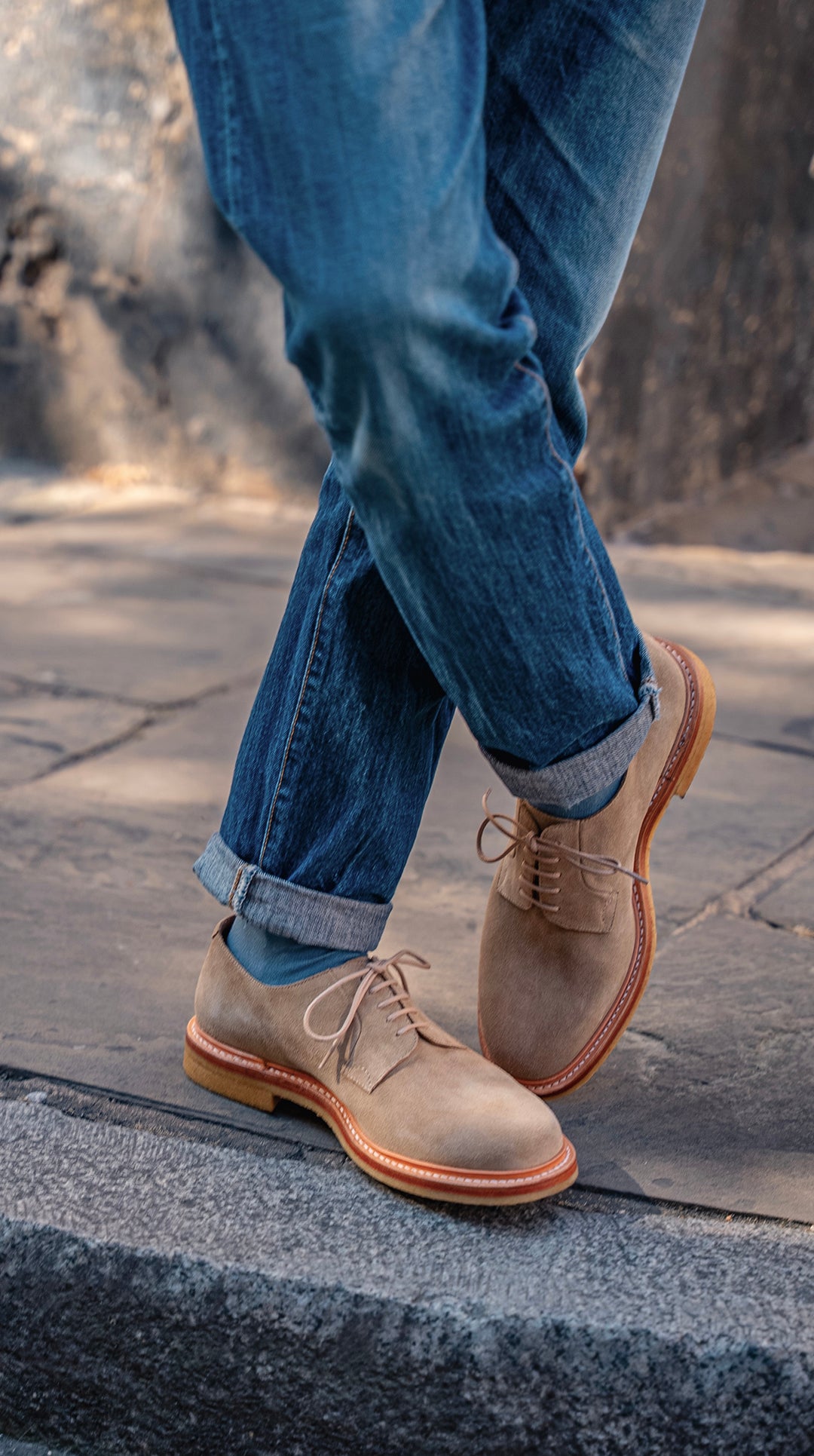 The Brawler, reimagined for sunnier days. This summertime variation features rich Sand colored suede, paired with a natural crepe sole for a softer look and feel.