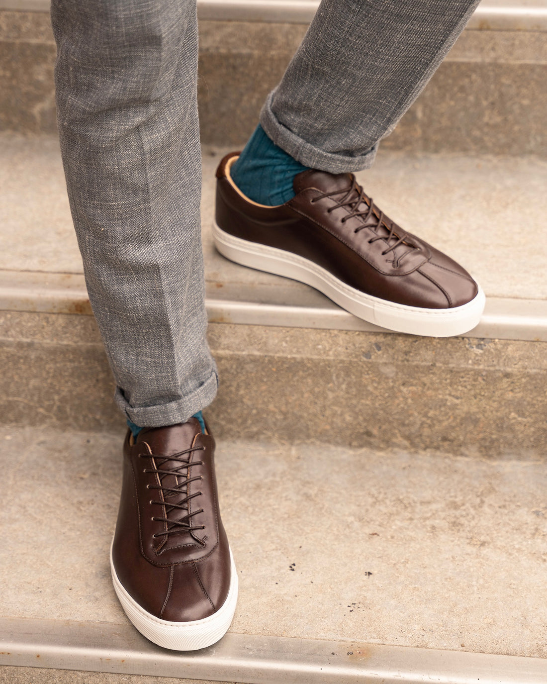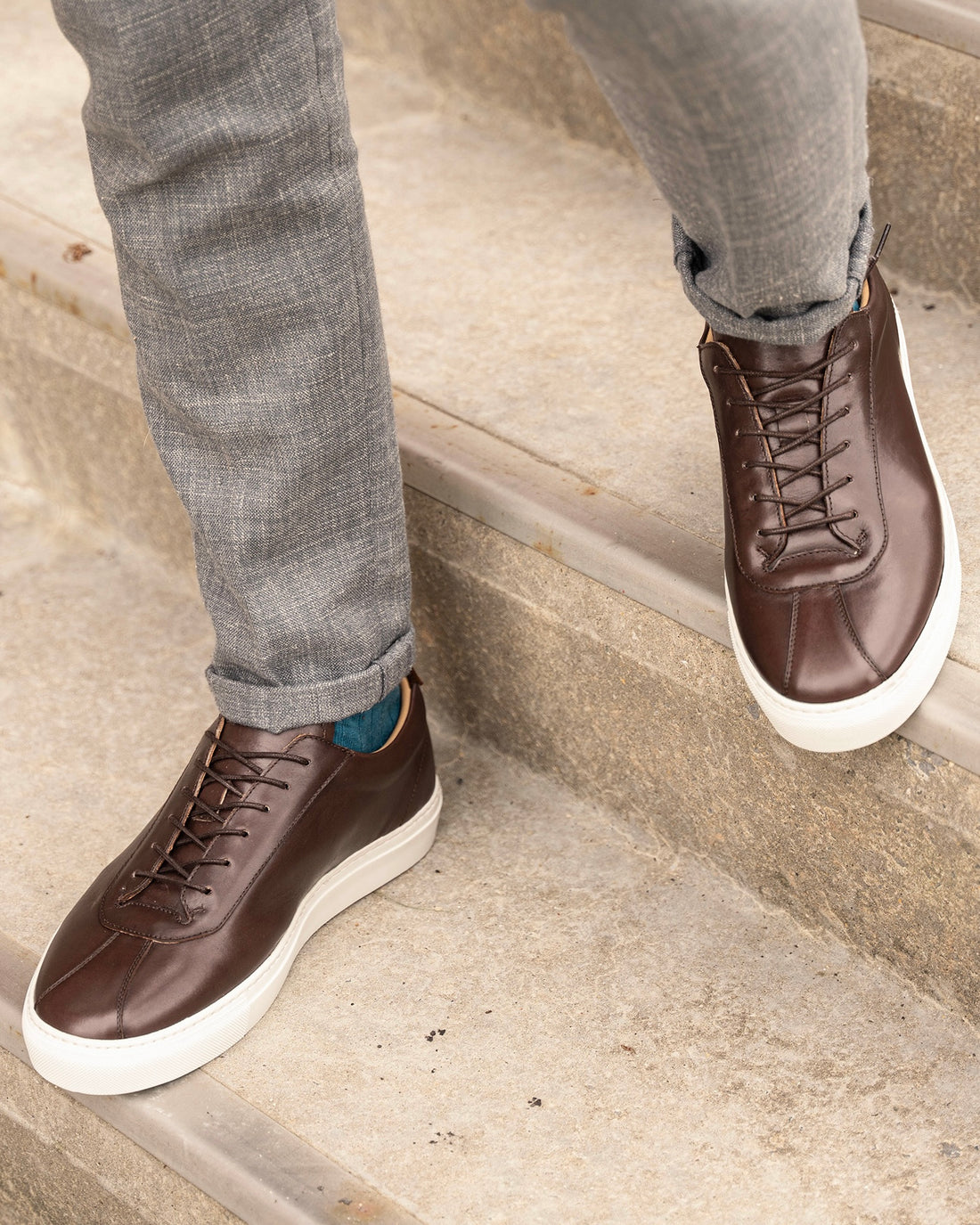 This dark chocolate brown sneaker offers a versatile blend of class and casual appeal. The rich leather and crisp white sole create a contrast that complements everything from denim to chinos. Whether you're dressing down with jeans or adding a touch of laid-back sophistication to a blazer, this sneaker seamlessly fits into any outfit.