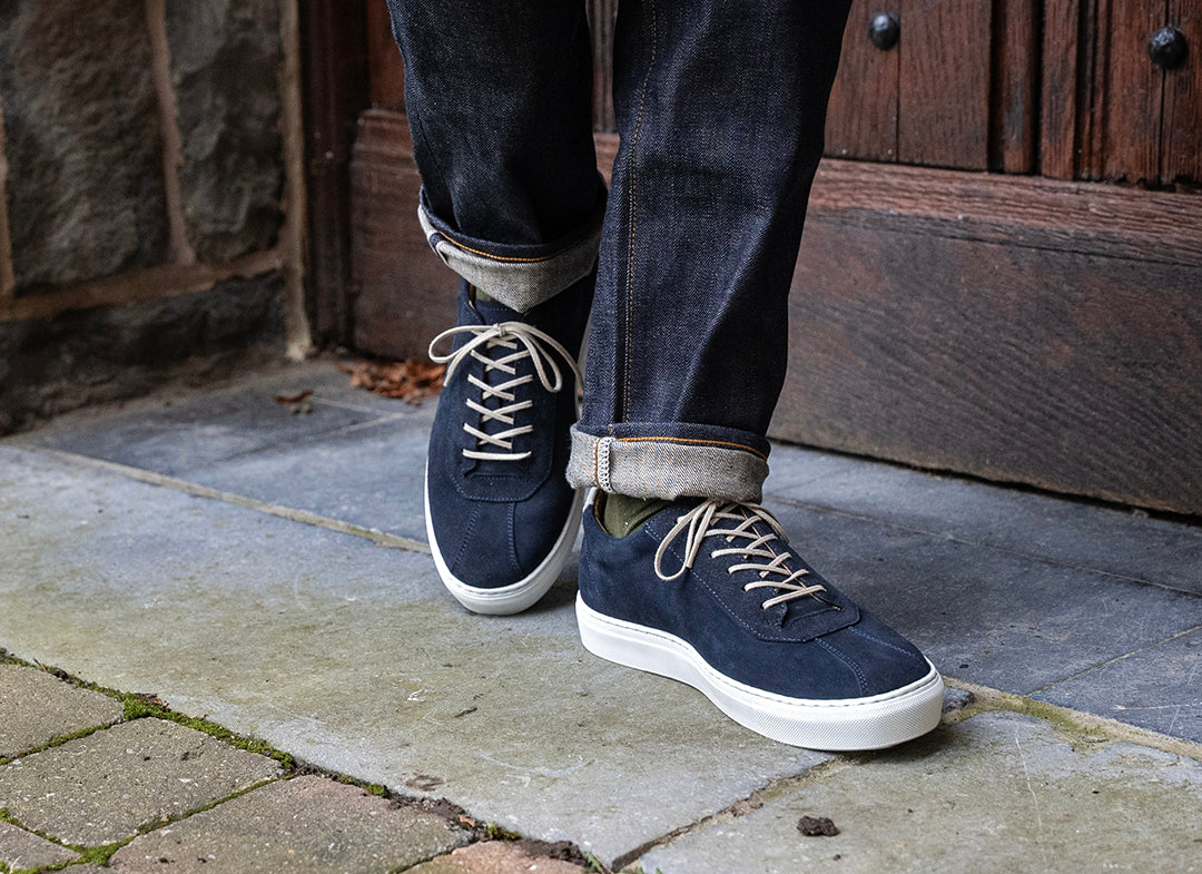 Looks great with denim, greys, or earthy tones—relaxed, but with a refined edge. The vintage navy suede adds depth and character, making it an easy choice for everyday style.