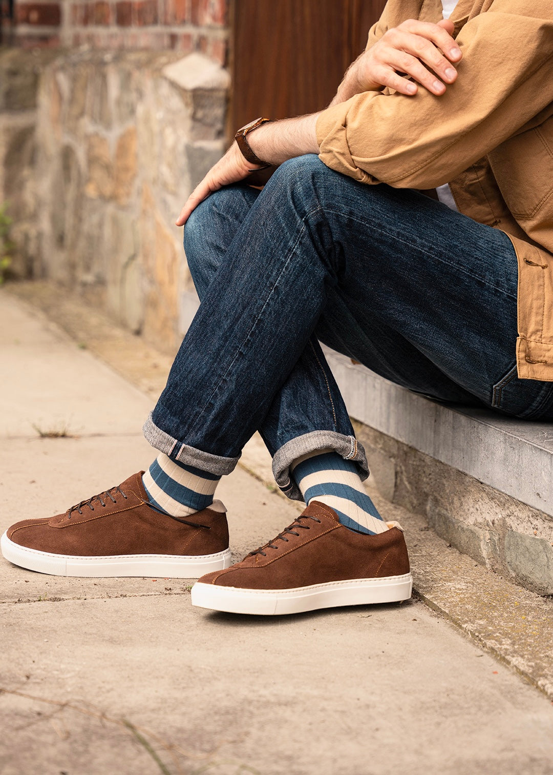 Regarding footwear sustainability, construction methods are equally important to sourcing. Our shoes are Goodyear welted, with stitched soles instead of glued. This results in far more sustainable shoes that will last you a very long time and are endlessly repairable.
