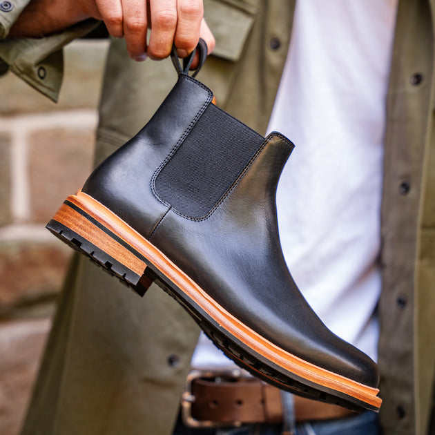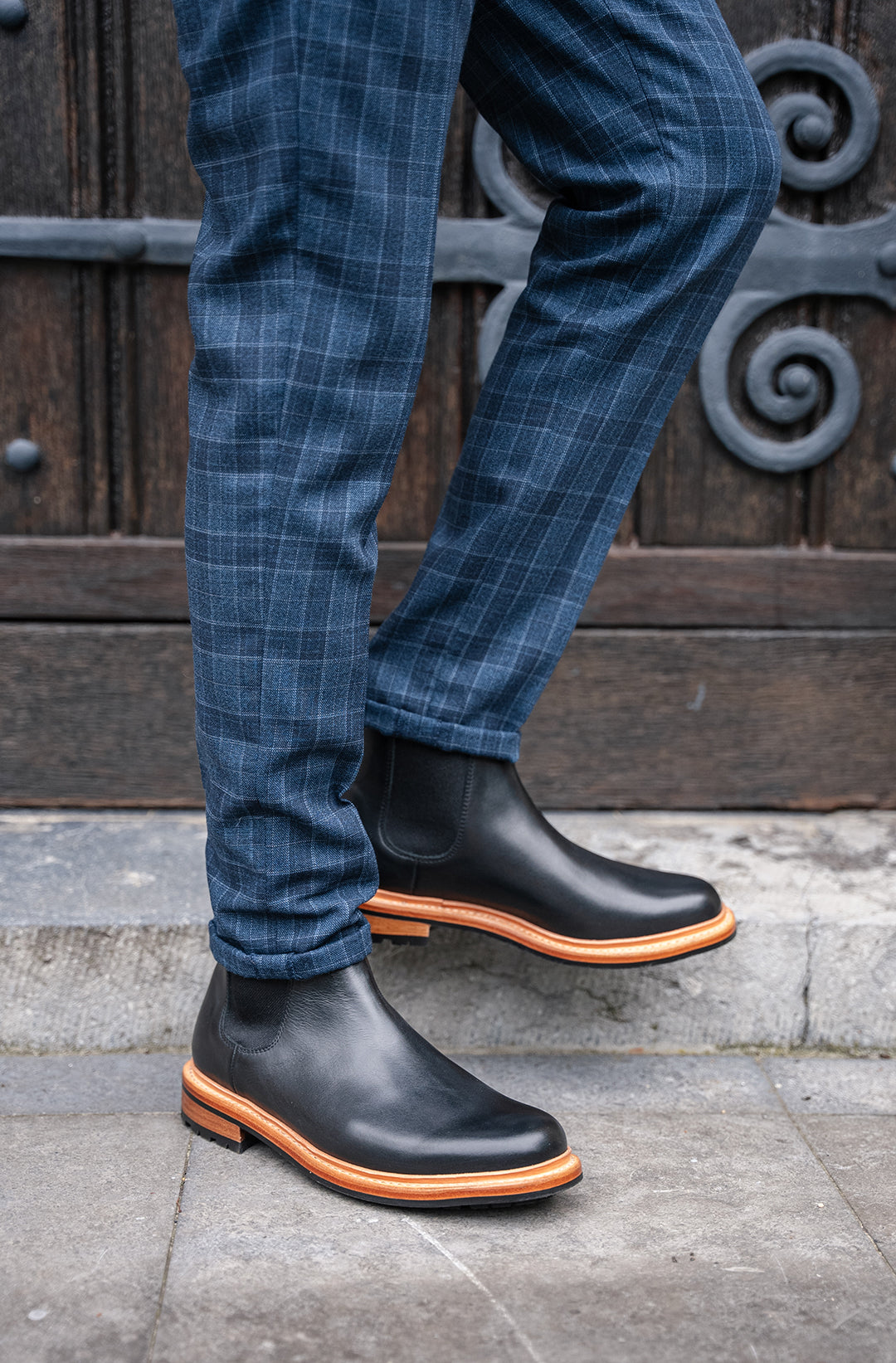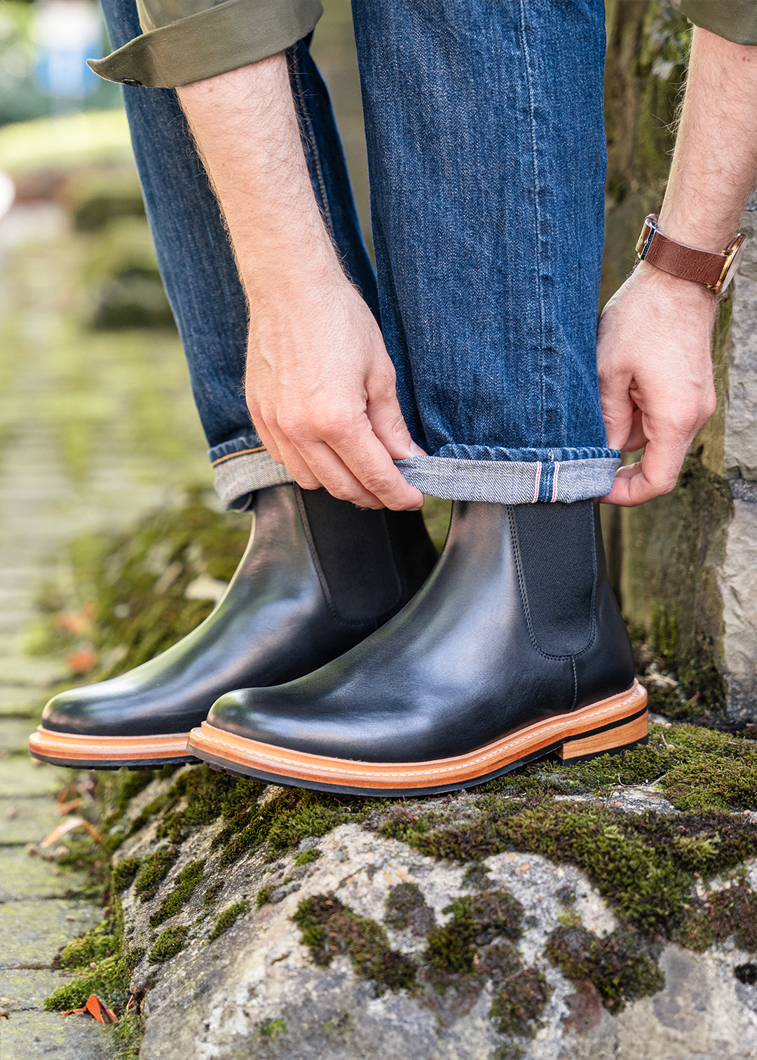 This Chelsea boot conveys swag and effortless style. Combine it as a feature piece in an all-black outfit or with colors that complement the natural sole. Formal or casual: you can't go wrong.