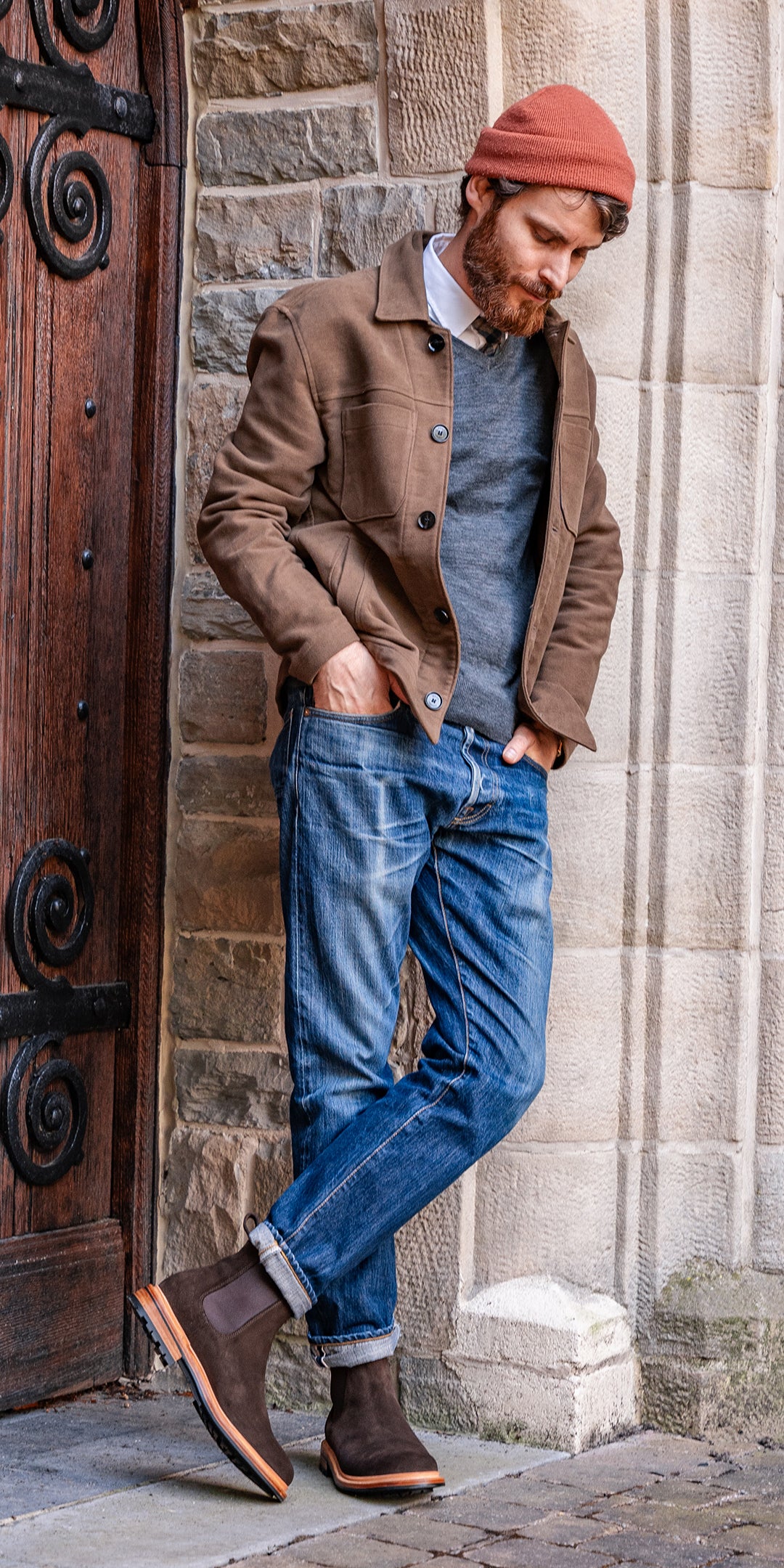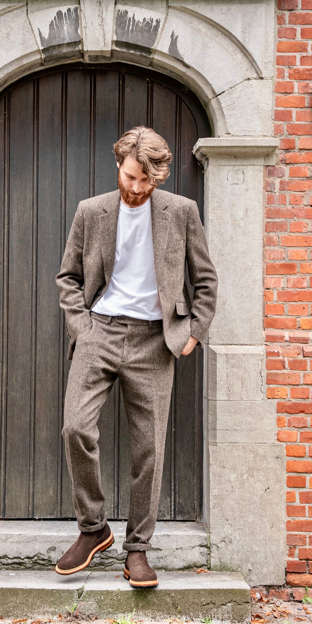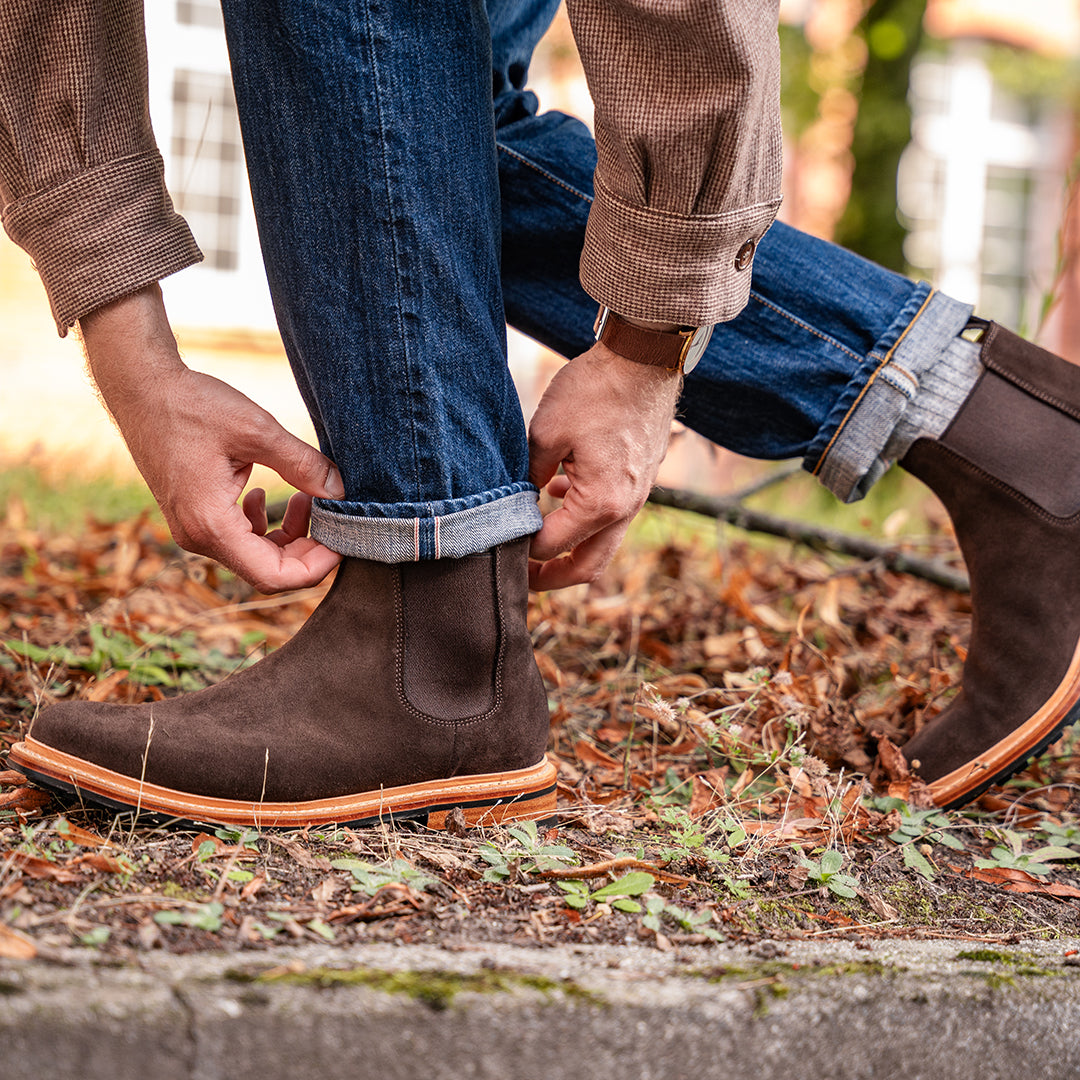 This dark brown suede Chelsea boot is all about casual elegance and versatility. It pairs effortlessly with laid-back outfits or adds a touch of personality to a more refined look. Whether you're styling blues, greens, greys, or browns, this boot will seamlessly tie your look together.