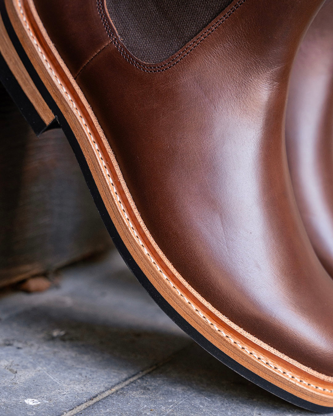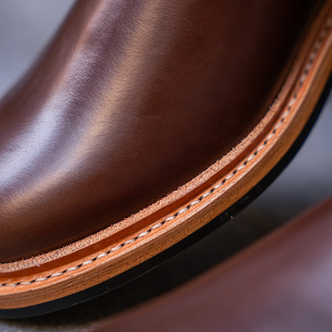 Regarding footwear sustainability, construction methods are equally important to sourcing. Our shoes are Goodyear welted, with stitched soles instead of glued. This results in far more sustainable shoes that will last you a very long time and are endlessly repairable.