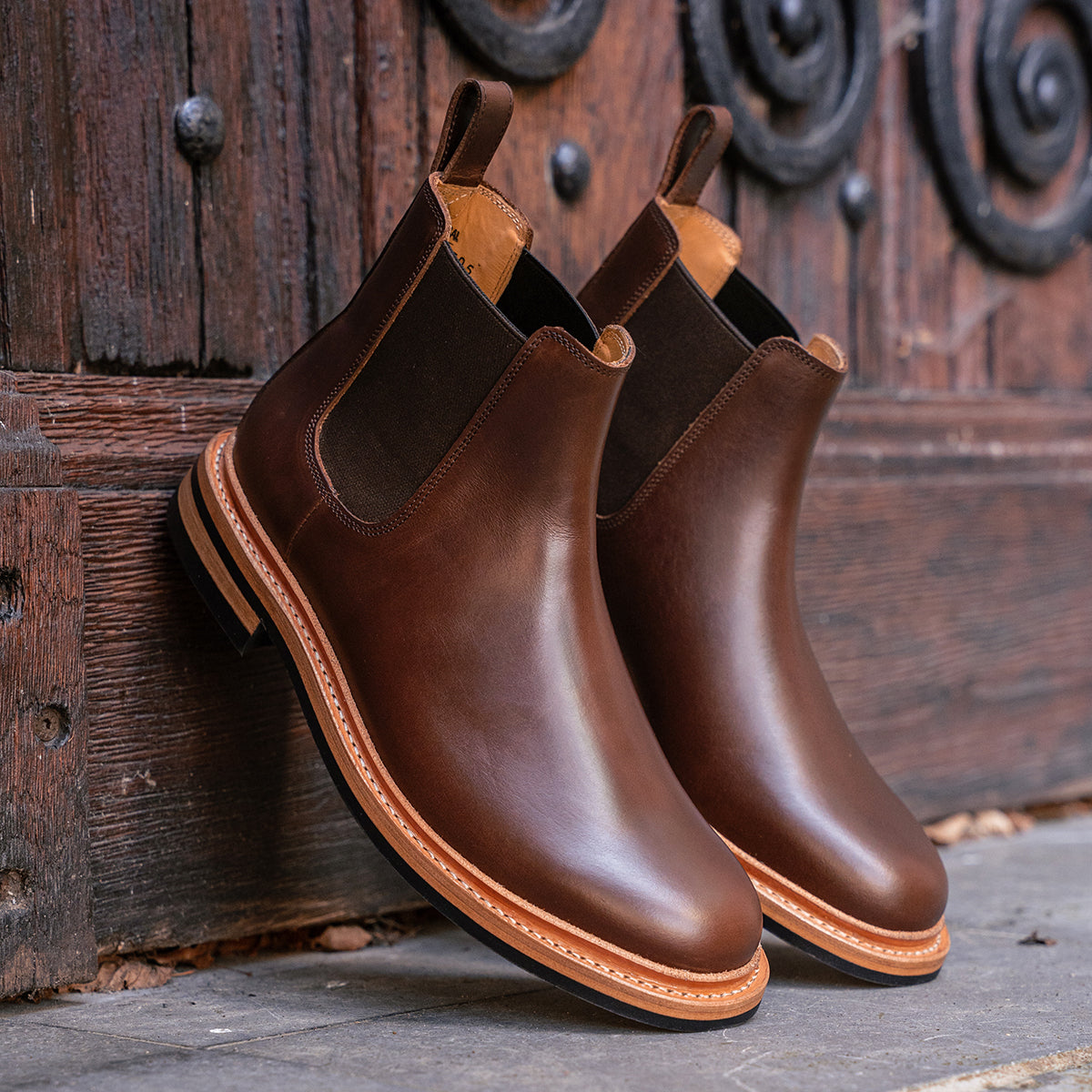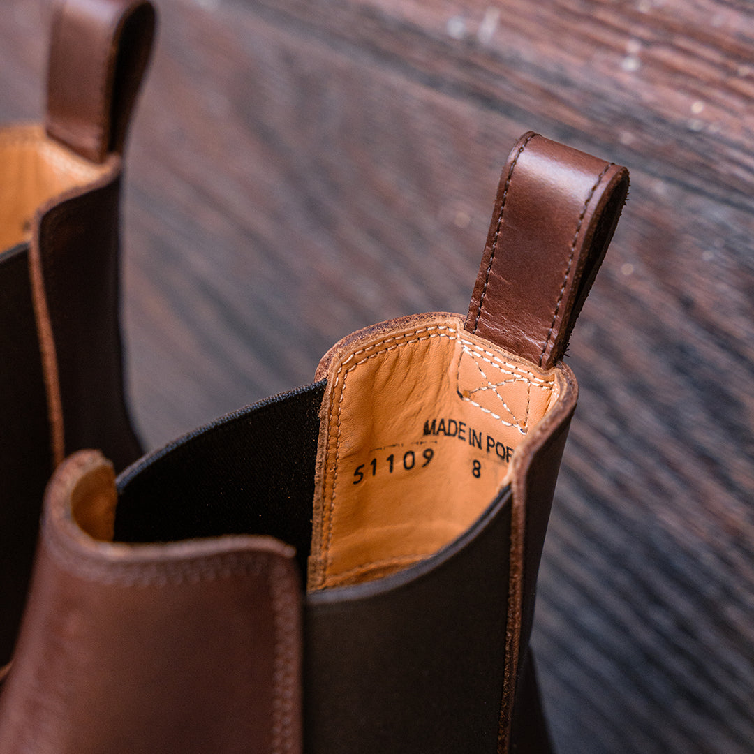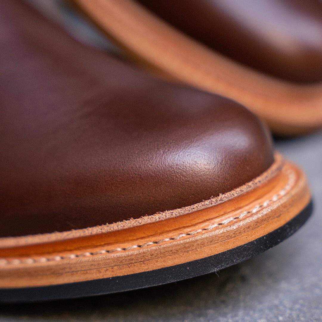 Crafted from oil-tanned leather with a pull-up effect, this pair will develop a rich patina over time. The deep Walnut brown shows immense depth and character, while the raw welt adds a level of ruggedness.