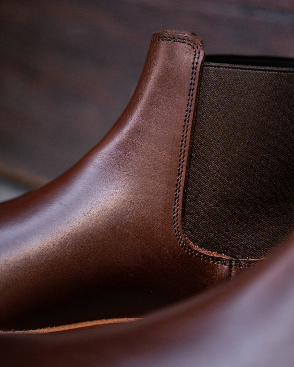 The minimal design of this Chelsea boot highlights its robust shape and the unique beauty of the leather.